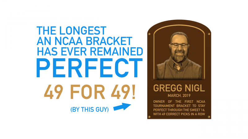 In 2019, Gregg Nigl started 49-for-49, not losing until Purdue beat Tennessee in the second game in the Sweet 16. This year, perfect brackets lasted through 28 games, including the no-contest Oregon-VCU game due to COVID-19 protocols.