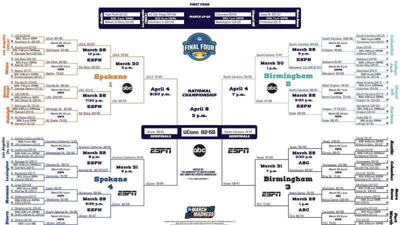 One bracket had No. 8 South Florida upsetting No. 1 South Carolina, and while it looked dicey in the first half, the Gamecocks came out on top 76-45.