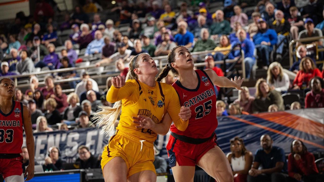 Ashland overpowered Minnesota Duluth in the first half 40-22 and the gap was too big to close despite the Bulldogs scoring 27 points in the final quarter. Minnesota Duluth's Brooke Olson led the game with 26 points.