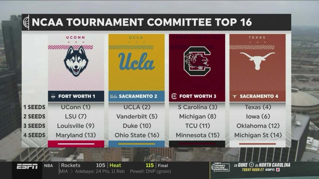 Top 16 March Madness women's seeds, as of March 1 revealed in bracket preview