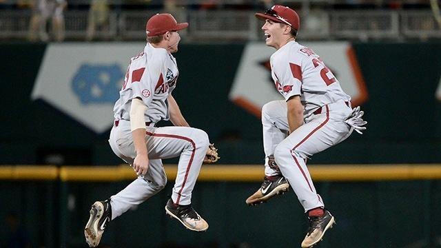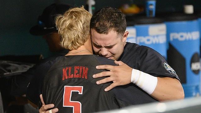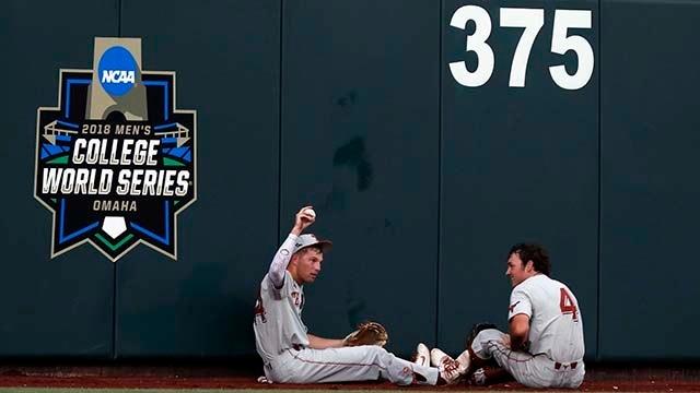 Why we love it: Oregon State just wouldn't let its time in Omaha come to an end. Game 2 of the finals is sure to be remembered for a while in college baseball history, and this photo captures that historic game. Why we love it: Often in sports, the victories come along with the pain of a loss. This photo captures a tender moment with Gators head coach Kevin O'Sullivan and his children, who consoled him after the loss to Arkansas which eiminated them from Omaha. Florida entered the College World Series as the defending champs, and many thought they could maybe do it again. Why we love it: Arkansas was a team riding high throughout the College World Series. The Razorbacks were 3-0 entering the finals. Despite the tough loss in the finals, we can't forget about Arkansas' impressive run in Omaha this year. This photo of Carson Shaddy and Jax Biggers jumping for joy proves just that. Why we love it: Well rain was a thing in Omaha this year. We had the finals pushed back a day due to weather, and one game even had a four-hour delay. We know the busiest person in Omaha this year was meteorologist. And you have to show some love to the grounds crew for all their hard work. Why we love it: This is proof that baseball in a contact sport. We appreciate this awesome action shot as a reminder of the impressive quick play we saw in the College World Series. In this shot, Gators shortstop Deacon Liput takes a hard dive to steal second base, sedning Texas Tech's Michael Davis flyting trying to make a play. Why we love it: Although it may look easy, catching a fly ball takes skill. On this particular play, two Texas players, Mason hibbeler and Tate Shaw, each attempted to make a play. Although the pair got quite close to each other, the play was made, even if it wasn't the prettiest. Why we love it: No explanation needed. Why we love it: A chance to play in Omaha is not something that comes every year. The emotion of being eliminated is very raw in this photo above. For Texas Tech, this was its third College World Series appearance in five years. Why we love it: Benny Beaver, Oregon State's mascot, somehow found his way to the top of the iconic dog pile after the final out. This beaver got hops. Why we love it: This one captures the beauty of college baseball — and the magic that is Omaha.Can't wait for the 2019 College World Series? Us either. Check out the dates here.
