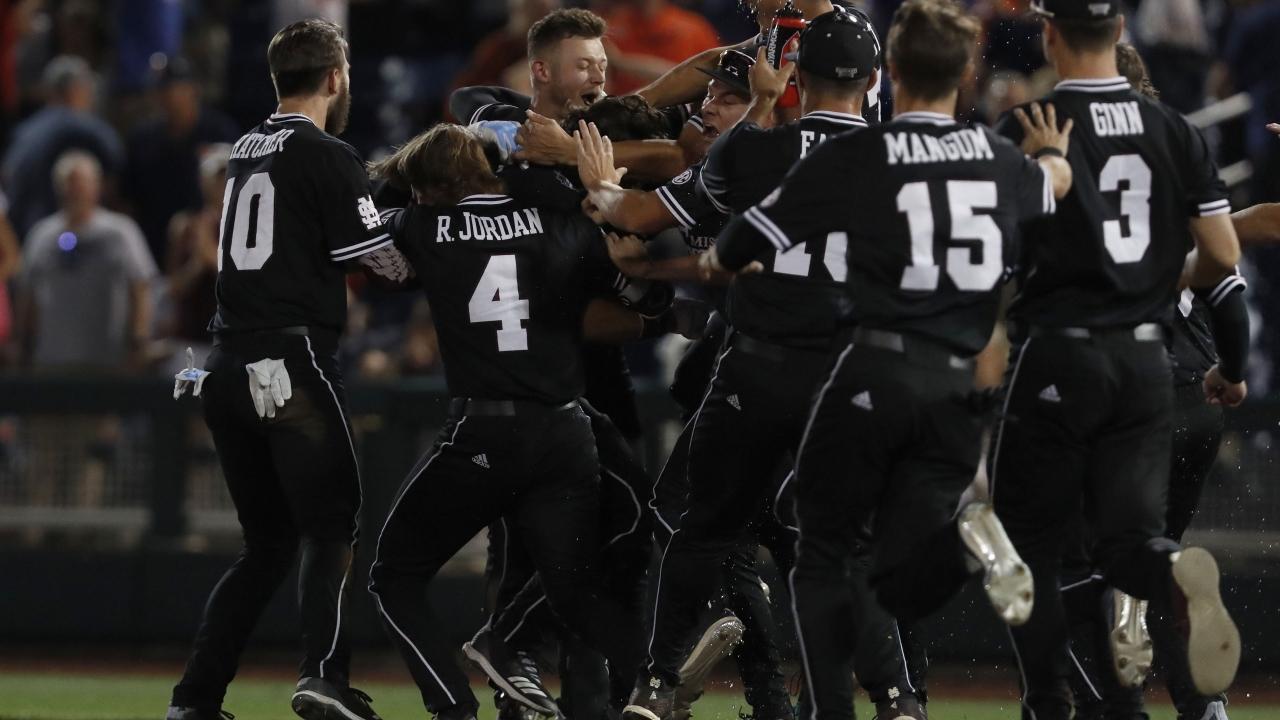 But one team’s happy clubhouse is another team’s anguish. Poor Auburn. That game vanished before the Tigers’ eyes. The fickle nature of baseball was most clear with Julien. He blasted a 429-foot homer in the second inning — matching the longest ever in a CWS game in TD Ameritrade Park — and drove in another in the fourth. Star of the game, until his throw to first base sailed high with two out in the ninth.