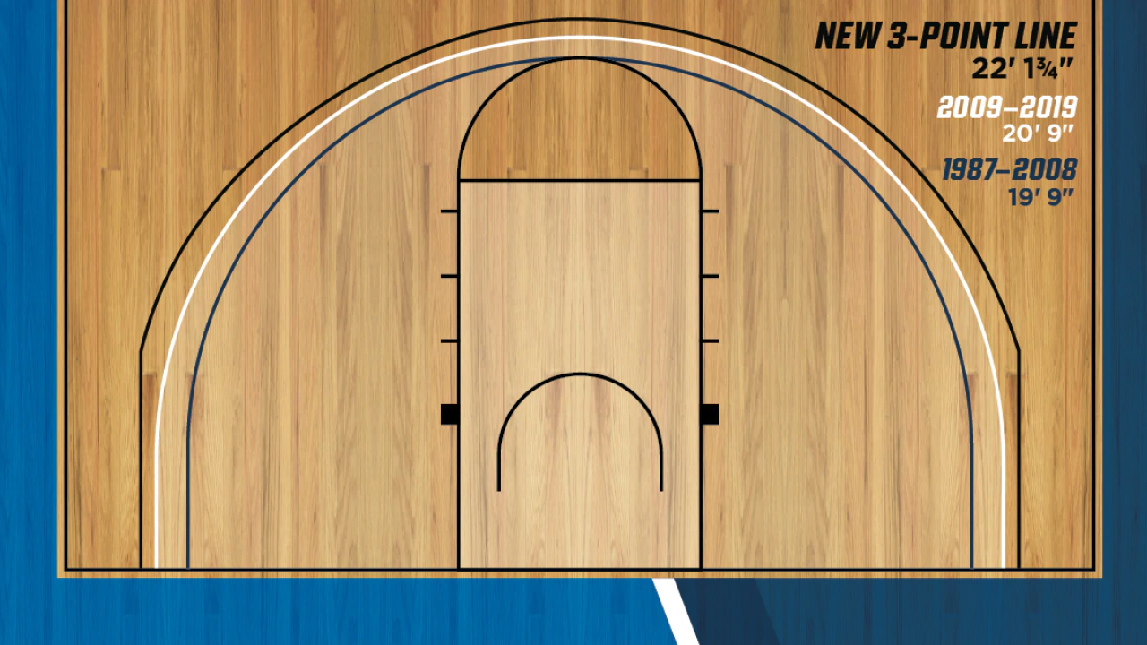 Starting this season, the 3-point line in men's basketball is 22 feet, 1 ¾ inches from the basket – a move of more than one foot, four inches – which has widened the gap between elite 3-point shooting teams and those that struggle.