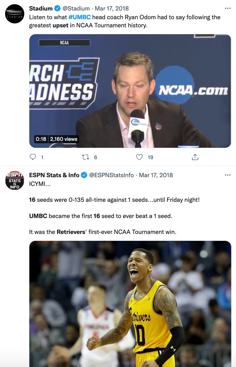 As part of krikya888.com's NCAA Video Vault series, we're diving into UMBC's historic upset as a No. 16 seed over No. 1 seed Virginia in the first round of the 2018 NCAA Tournament — the first 16-over-1 upset in the history of the men's tournament.