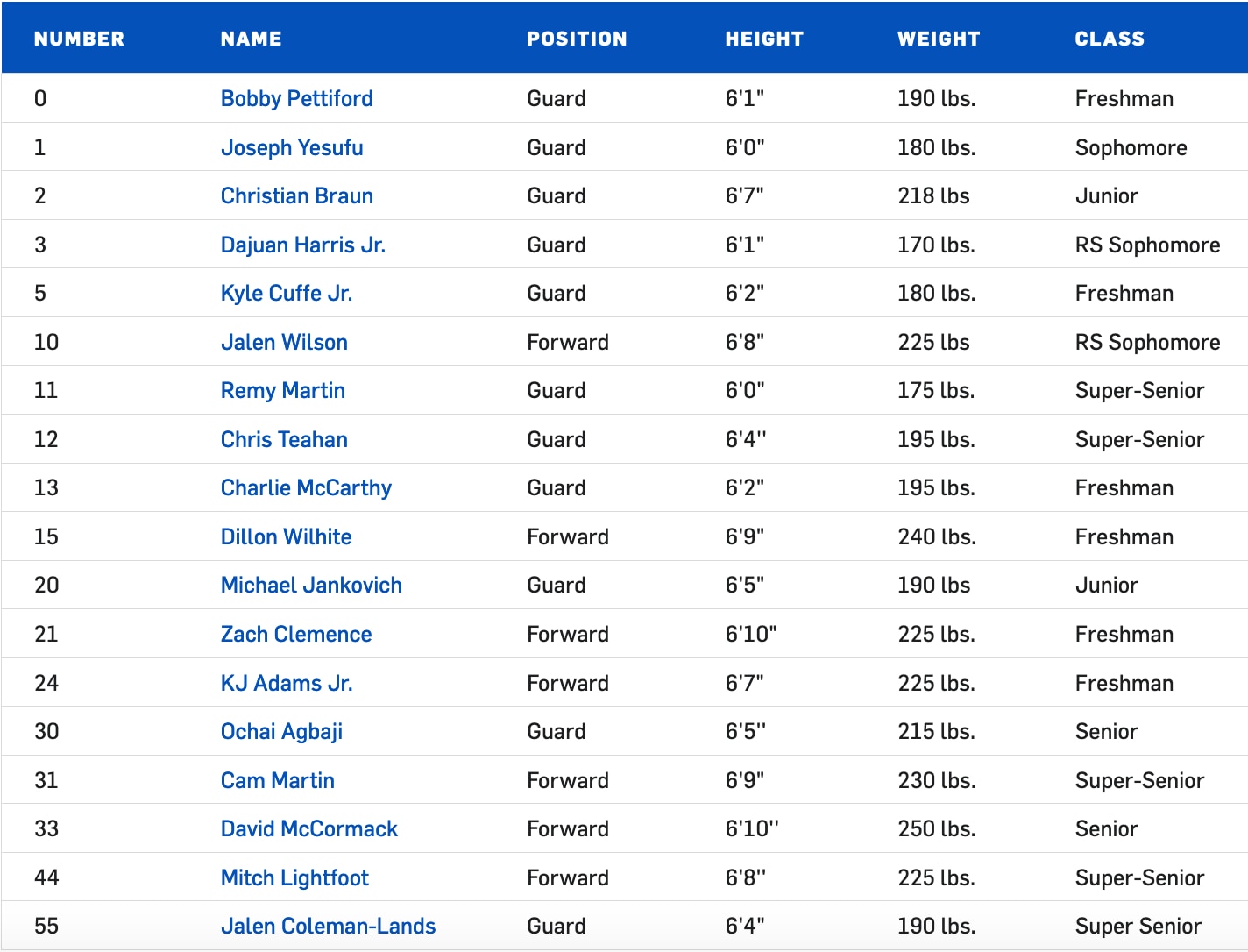 This season, Kansas' roster has four players who are at least 6-9 or at least 230 pounds, plus two others who are listed at 6-8 and 225 pounds.