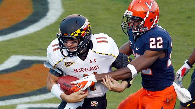 Best meeting: 1945. No. 13 Virginia met the Terrapins, and first year head coach Paul "Bear" Bryant, in Griffith Stadium in Washington, D.C. The Cavaliers had won 14 straight games over the past two seasons, but they hadn't faced the future Alabama legend yet. Terp running back Sam Behr had a 90-yard touchdown run to start the fourth quarter, but Virginia still held a 13-12 lead. Bryant, however, had a trick up his sleeve. Freshman tailback Red Poling hit end Don Gleasner with a short pass, before Gleasner broke away for the 50 yard score in the final seconds of the game.
