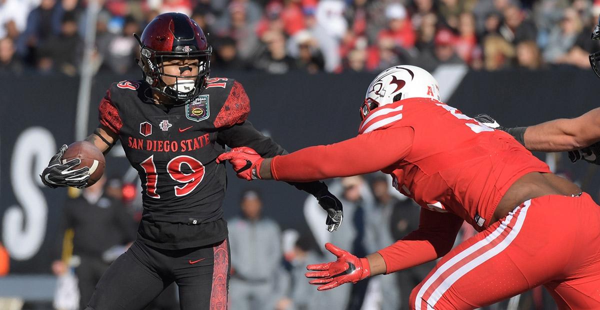 Then this year, he rounded out his college career with another award for the conference's top offensive player. He made headlines for putting up 200-yard performances in two consecutive games early on, including 281 in Week 2 against California. He also broke Marshall Faulk's San Diego State rushing record in the process of the win over the Golden Bears. Those ended up being two of his four 200-yard games for the regular season, not to mention a 198-yard performance. He was named a finalist for the Doak Walker Award, given to the country's best running back.