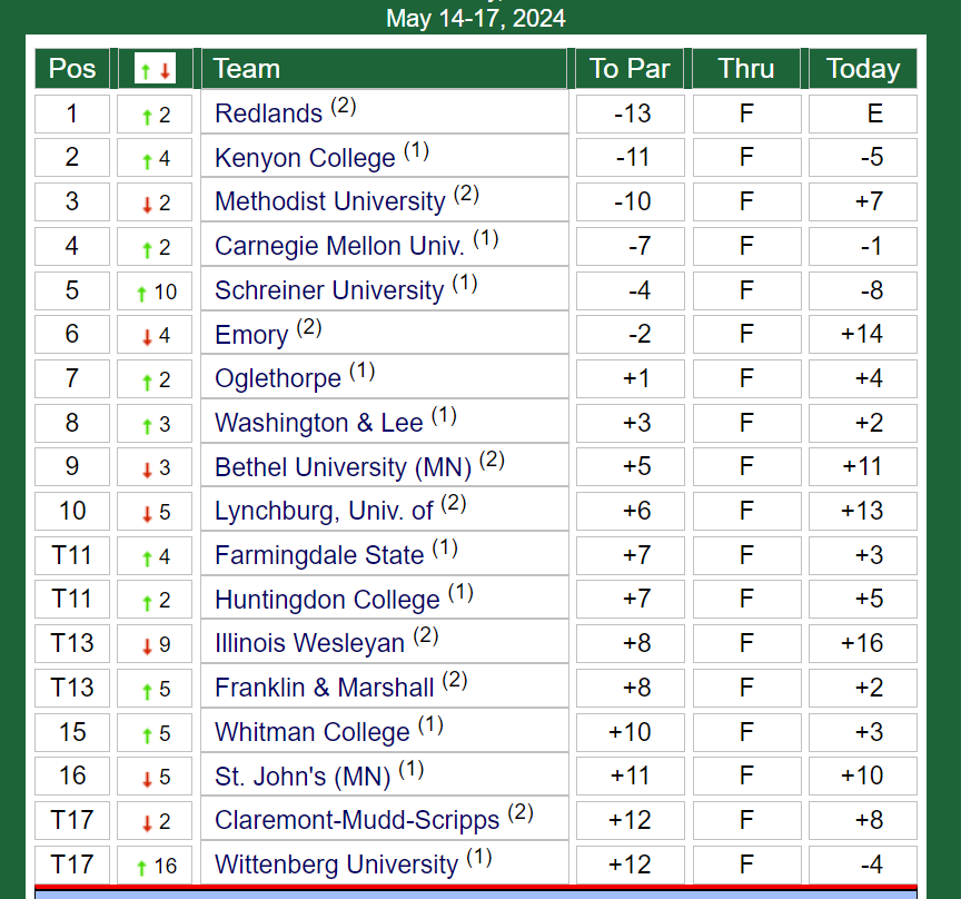 The 2024 NCAA DIII men's golf championships began with the selections on Monday, May 6, released here on krikya888.com. Championship finals came to a close on Friday, May 17 at Boulder Creek Golf Club in Boulder City, Nevada.
