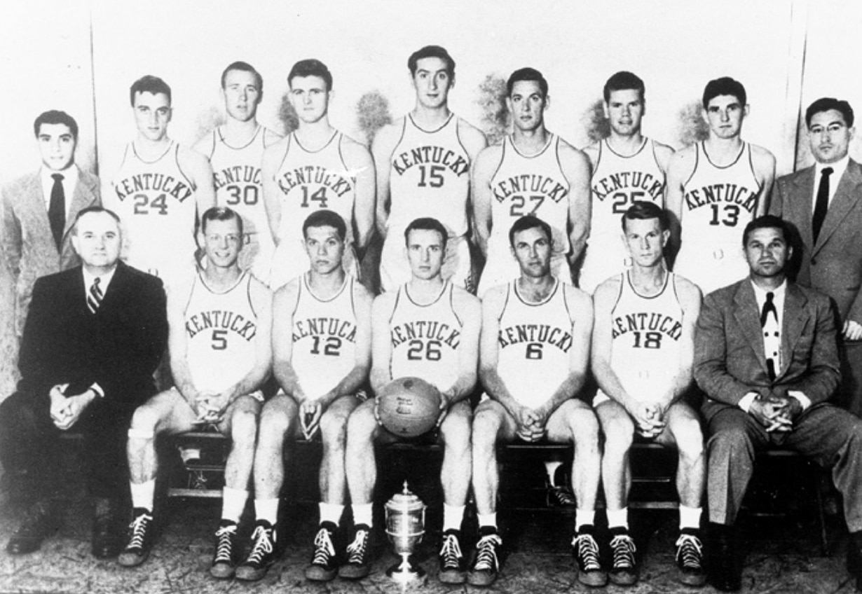 "Kentucky assumed the lead early and led almost all the way," reported the AP. "The Southeastern Conference champions were sparked by big Alex Groza and All-American Ralph Beard. Groza, a 6-7 ball of fire, racked up 23 points and played a terrific game at the backboards. Beard, who connected on his first four set shot attempts in the first half, was the Wildcats' steadying influence as well as their playmaker."