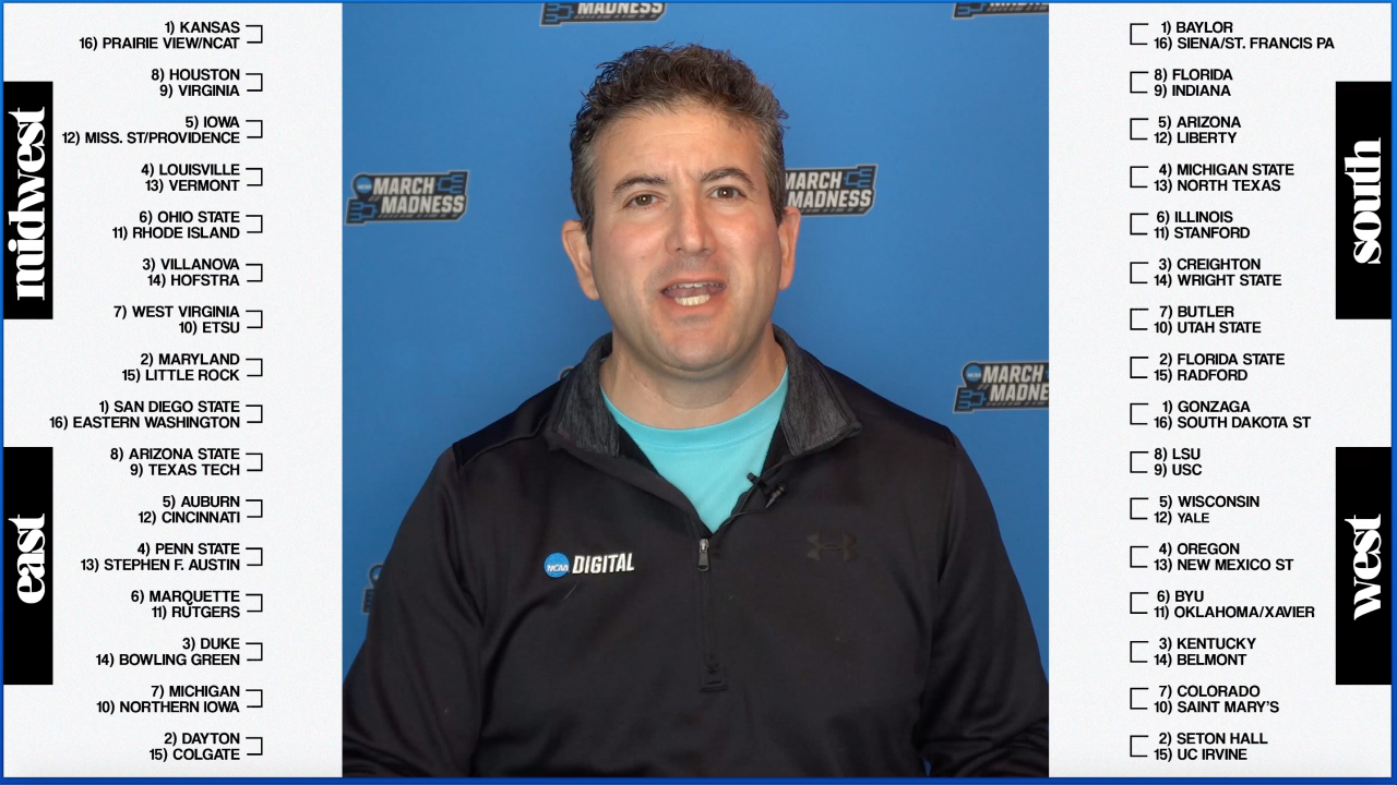 Though his No. 1 seeds are the same four teams as last time, the order has changed: Kansas, Baylor, Gonzaga and San Diego State. There are also some changes on the seed line, as teams such as Wisconsin and BYU moved up.