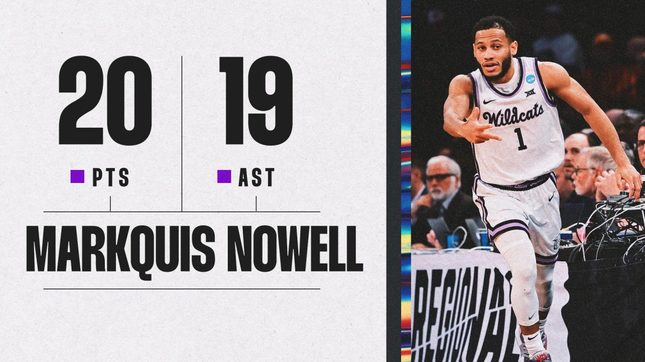 More important than the assist record, the points or the defense is the win. Nowell's play led No. 3 seed Kansas State to a win over No. 7 seed Michigan State, leading a team with a first-time collegiate head coach to the Elite Eight.