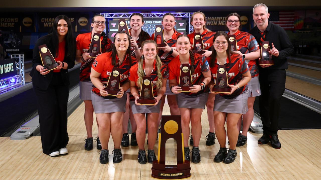 College Bowling - Home NC Bowling Every NC bowling champion since 2004 2025 championship recapRelated videos Championship highlights NC Bowling Youngstown State wins 2025 bowling title NC Bowling Jacksonville State wins 2024 bowling title NC Bowling Vanderbilt wins 2023 bowling title NC Bowling McKendree wins 2022 bowling title Best matches NC Bowling 2025 — Jacksonville St. vs. Wichita St. NC Bowling 2024 — Sam Houston vs. Youngstown St. NC Bowling 2021 — Arkansas St. vs. Youngstown St. NC Bowling 2019 — Vanderbilt vs. Nebraska NC Bowling Championship April 10 - 11, 2026 Yorktown Lanes | Cleveland, OH Championship Recaps 🐧 Youngstown State wins 2025 🐔 Jacksonville State wins 2024 ⚓️ Vanderbilt wins 2023 😼 McKendree wins 2022 🌽 Nebraska wins 2021 🪓 Stephen F. Austin wins 2019 ⚓️ Vanderbilt wins 2018 Follow NC Bowling