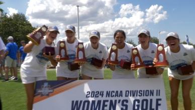 DII Women's College Golf - Home DII women's golf DBU wins 2025 NCAA DII women's golf championship Champs history championship highlights DII Women's Golf 2025 — DBU 4, Central Mo. 1 DII Women's Golf 2024 — UIndy 2, St. Mary's 2 (Playoff) DII Women's Golf 2023 — DBU 3, Nova Southeastern 2 DII Women's Golf 2022 — Findlay 3, Limestone 2 Division II Women's Golf Championship May 12-16, 2026 PGA National Resort | Palm Beach Gardens, FL Follow DII women's golf